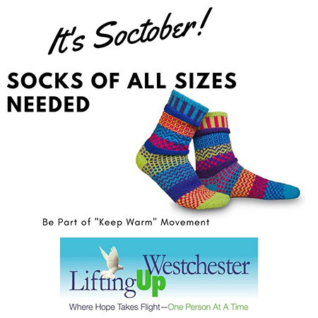 Bring new socks to your class and we bring them to Lifting Up Westchester which dispatches them to affiliated home shelters.